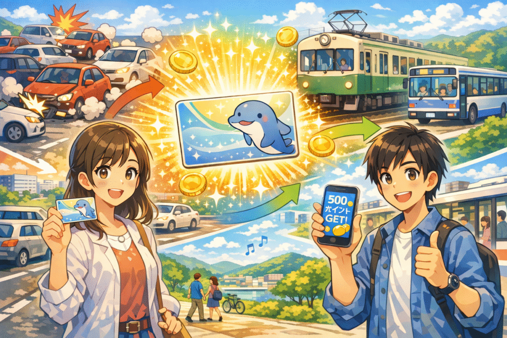 その課題を解決するために、高松市は午前10時〜午後4時の間、Irucaを使って電車やバスを利用した人に対して、ポイントを進呈するというサービスを行いました。