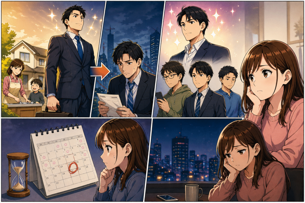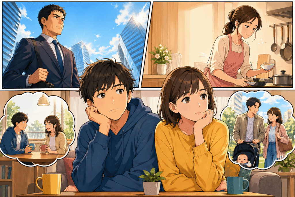 企業戦士としてバリバリ働く父親の背中にも、専業主婦として夫を支える妻の姿にも憧れていない現代人の本音がここにあります。