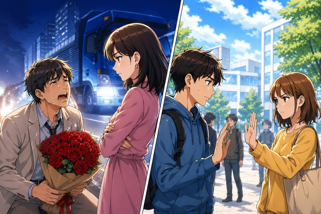 「デートの誘い、2回誘って断られたら諦める」と答える若者が40%の現代において、101回告白の末ダンプカーに突っ込む男性はストーカー扱いされ、警察沙汰になります。