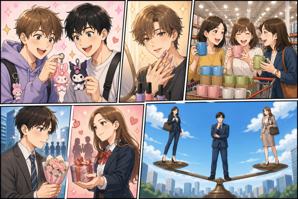 まるで、女子会でネイルを褒めあうOLや、コストコでお揃いのマグカップを買って「カワイイ」「カワイイ」と盛り上がる主婦のようだ。若い世代はそれだけ、男性でも「周りと同調・共感したい」との思いが強いのだろう。