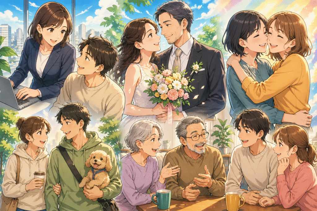 法的な籍を置かない事実婚でもいいですし、同性婚でもいい。女性のほうが収入が高い逆転婚でもいいし、10歳以上離れた年の差婚でもいい。